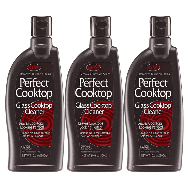 HOPE'S Perfect Cooktop Glass and Ceramic Cooktop Cleaner, Fast Acting and Removes Burnt on Stains from Glass Ceramic Smooth Top Ranges with its No Rinse Formula, 10.6 Fl Oz, Pack of 3