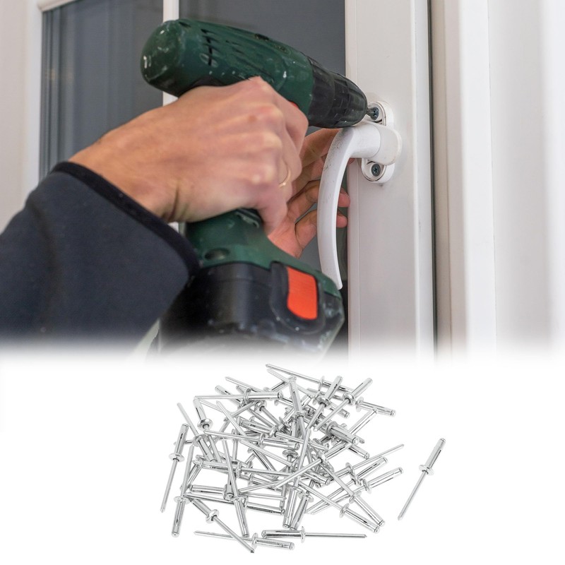 HOPESPANNER 4mm Grip Diameter 25mm Grip Length 8.4mm Flange Diameter Dome Head Tri-Fold Rivets Repairing Tool Assortment Kit Aluminum 50 Pcs