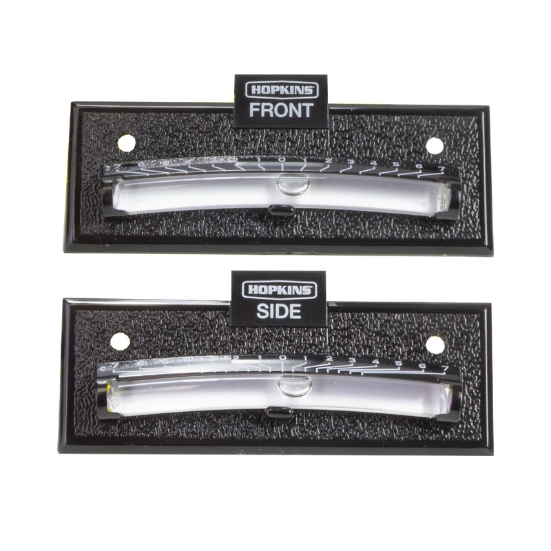 Hopkins Manufacturing Corporation makes your towing experience simpler and more rewarding through innovation and value. Hopkins offers a variety of towing solutions including vehicle wiring kits, adapters, vehicle and trailer connectors, breakaway systems and much more. Today, more than 40 percentage of retail category sales are generated from Hopkins innovations. The Hopkins Never Fade Graduated Level maintains crystal clear performance without fading over time, unlike traditional levels that fade due to UV exposure. Markings indicate the number of inches required to raise or lower the trailer or vehicle. Includes screw holes or self-adhesive back for mounting options.