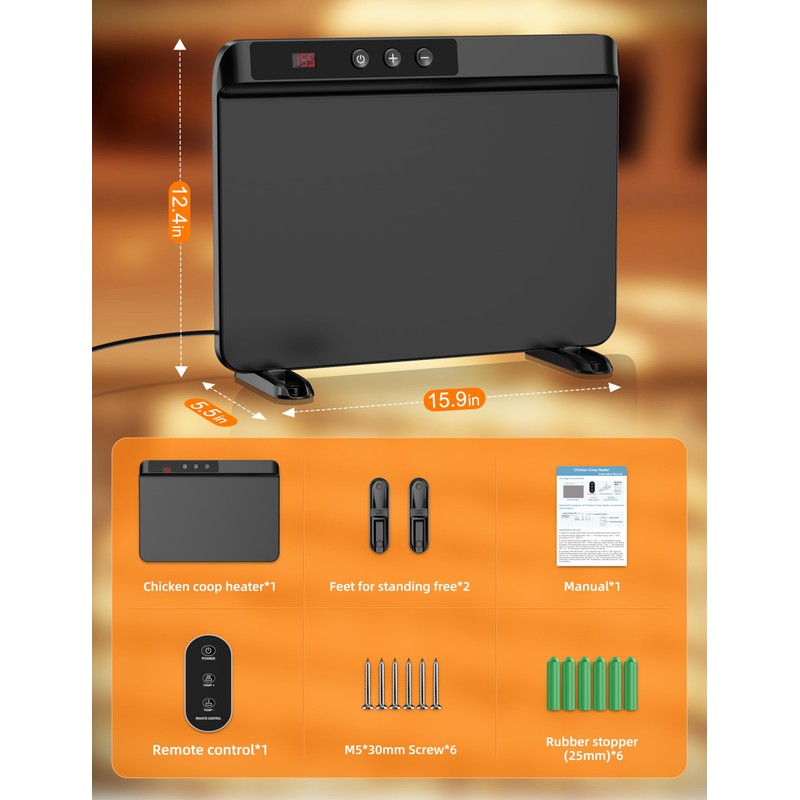 HOPOCO Smart Chicken Coop Heater with Efficient Thermostat, Compatible with Timers & Temp Controllers, 200W Safe Inside Radiant Flat Panel Warmer, Remote-Adjustable for Pets & Animals in Winter