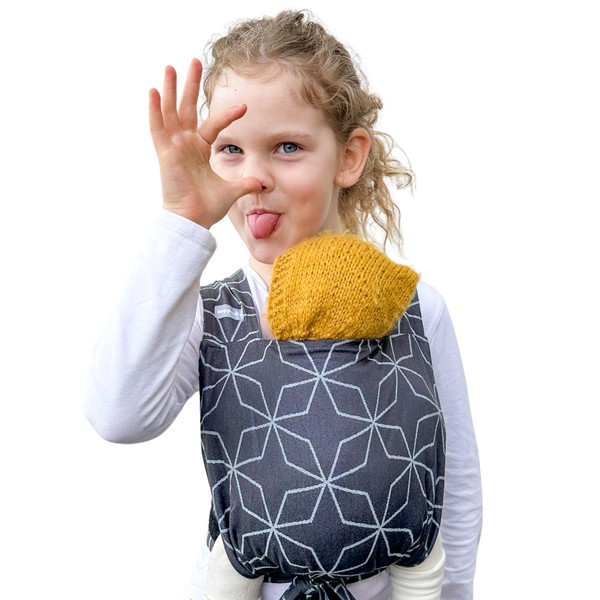 - Doll carrier made from 100% organic cotton; inspired by the Hoppediz baby carriers