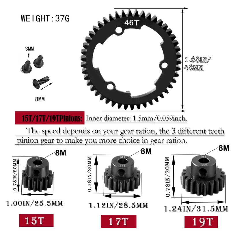 - ❤【Upgrades Part】:We provide 3 different teeth pinion gear(15T/17T/19T) to make you more choice in gear ration