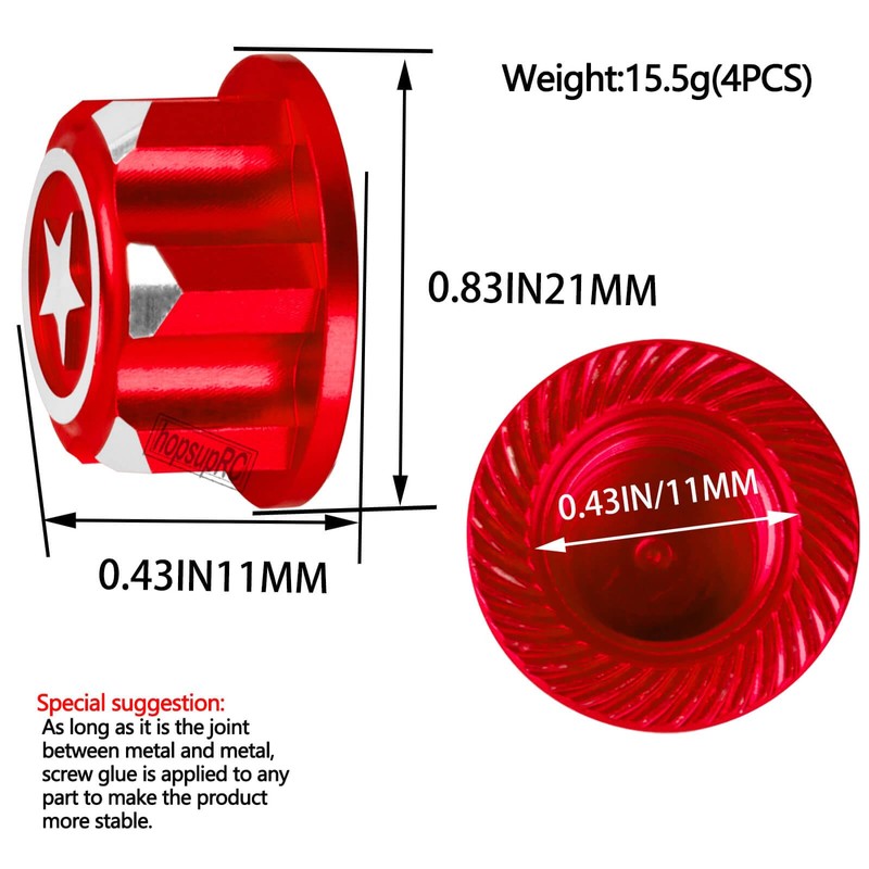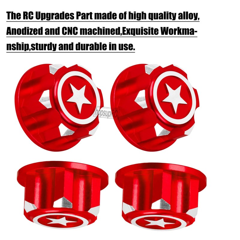 hopsupRC RC 17mm Hex Wheel Nut Upgrade Parts for X-Maxx Summit E-Revo 1/8 RC Buggy Truck Car,Aluminium Dustproof Anti-Skid Mount Cap Hops Up,Red(4PCS)