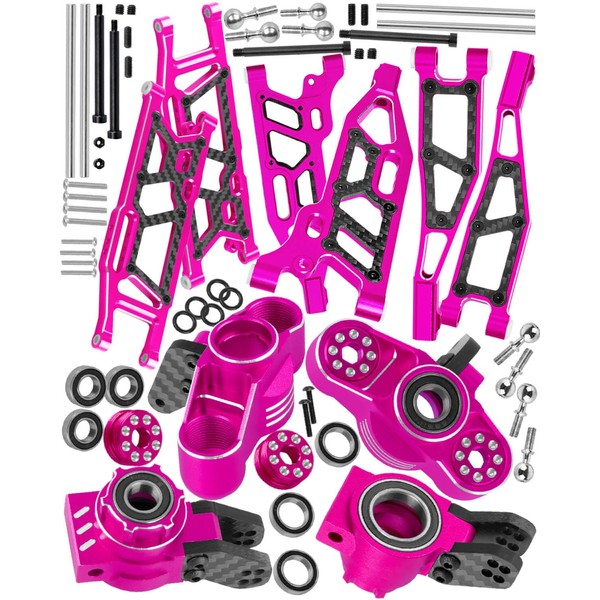 hopsupRC Upgrades for 1/8 Kraton/Notorious/Outcast 6S BLX,1/7 Big Rock 6S BLX,Aluminum Front Rear Suspension Arms & Front Steering Block Knuckles & C-Hubs Caster Blocks & Rear Hubs Hops Up,Pink