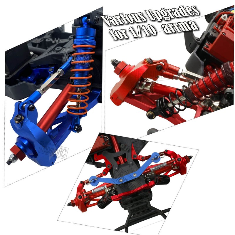 hopsupRC Upgrades Part for 1/10 Senton/Granite MEGA550 4X4,Alloy Suspension A Arms&Front Steering Block Knuckles & C-Hubs Caster Blocks & Rear Hubs&Adjustable Turnbuckles Camber Links,Red