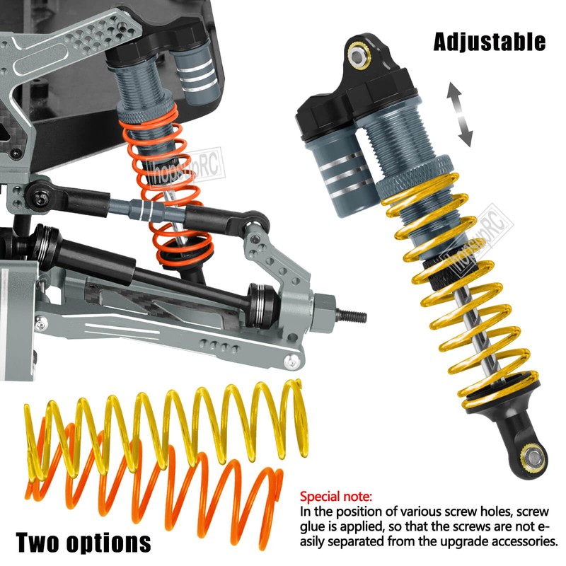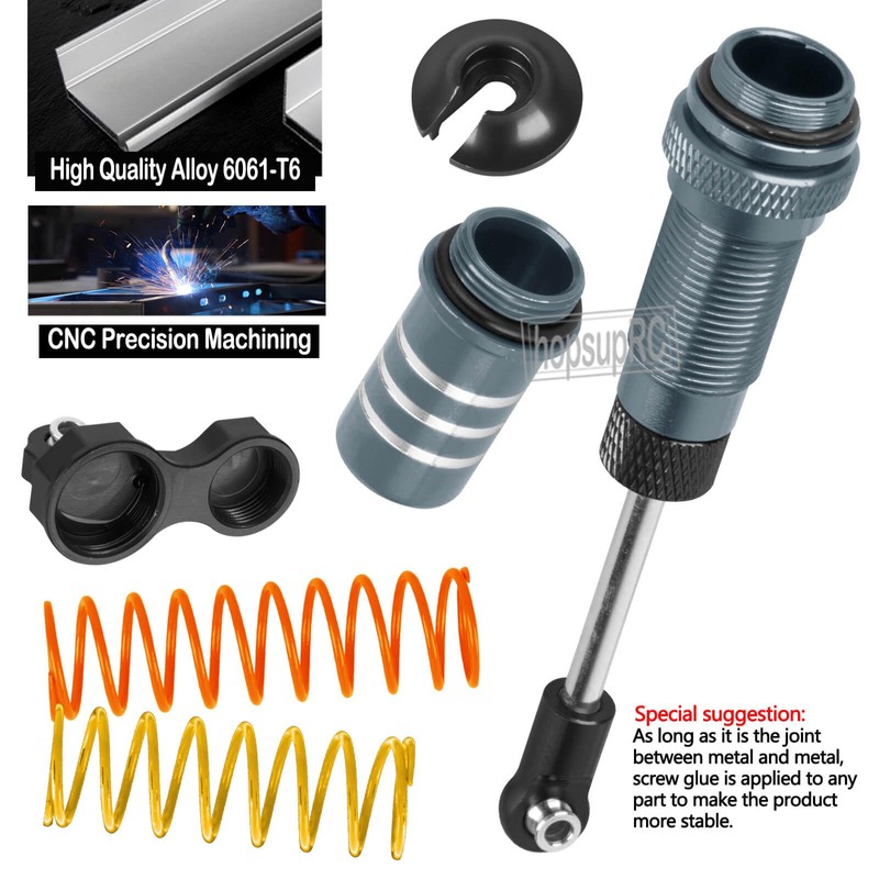 • 【High-quality Material】: The RC Shock Absorber Upgrades Part are anodized aluminum, precision CNC machined, lightweight and durable, increasing crash resistance and long-lasting durability.