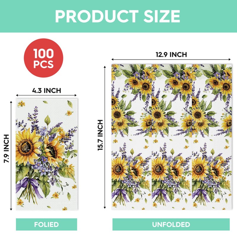 Horaldaily 100 Spring Disposable Paper Decorative Guest Napkins, Sunflower lavender Purple Flower Hand Towel for Party Lunch Dinner Kitchen Bathroom