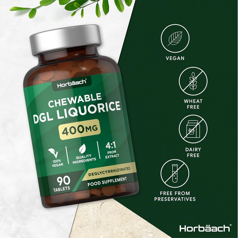 Horbaach DGL Licorice Root Tablets 400mg | Chewable High Strength Licorice Root Extract | 90 Tablets | Vegan & Vegetarian Friendly