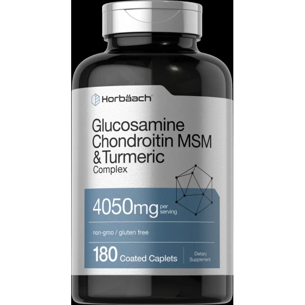 Horbaach Glucosamine Chondroitin with Turmeric & MSM 4050mg | 180 Caplets | by Horbaach