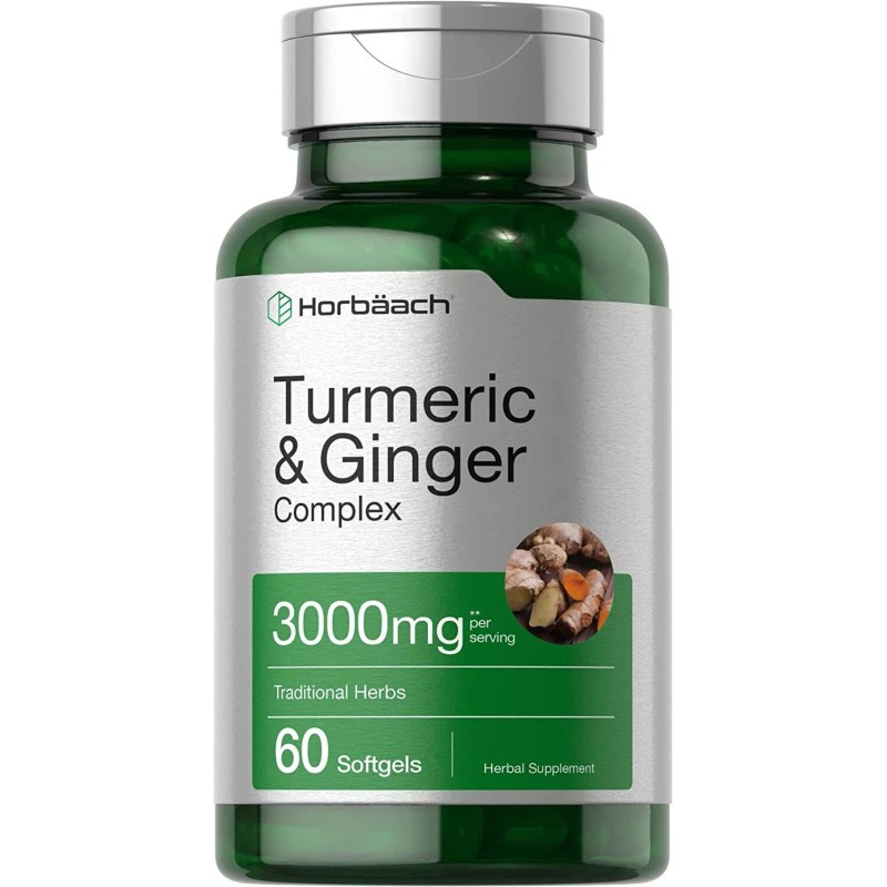 Horbäach Turmeric Curcumin Ginger Complex 3000mg | 60 Softgels | Black Pepper | Horbaach