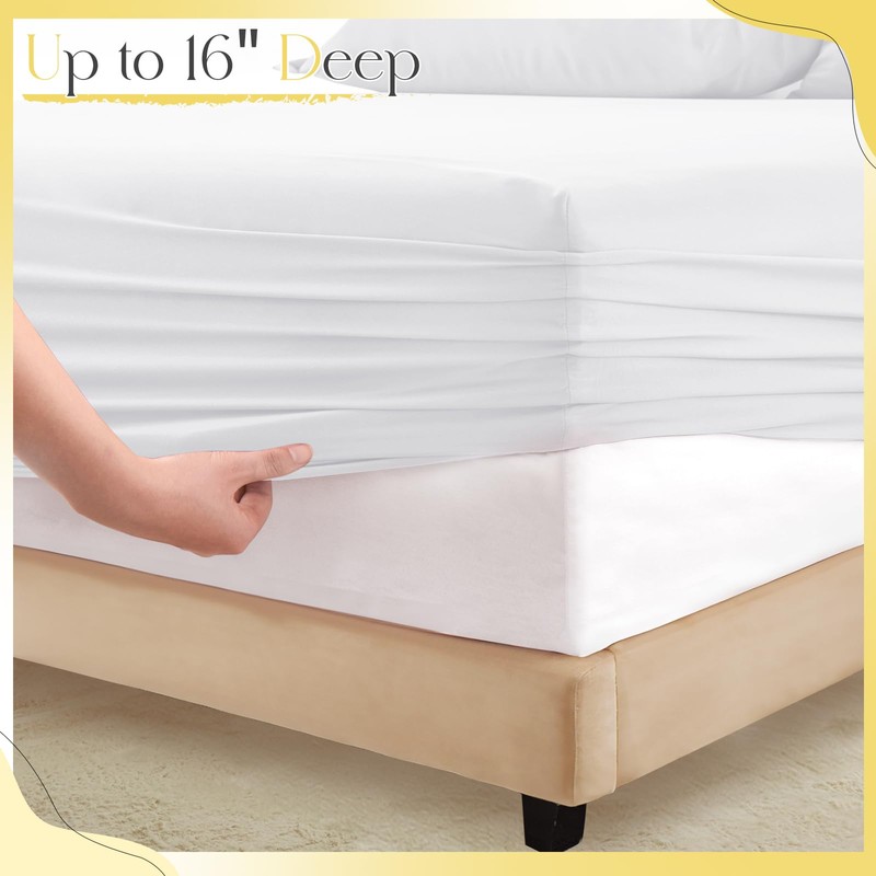 - [Deep Pocket Innovation] - 16" elasticized pocket design with all-around stitching secures mattresses up to 16" thick, featuring non-slip grip technology that stays wrinkle-free all night.