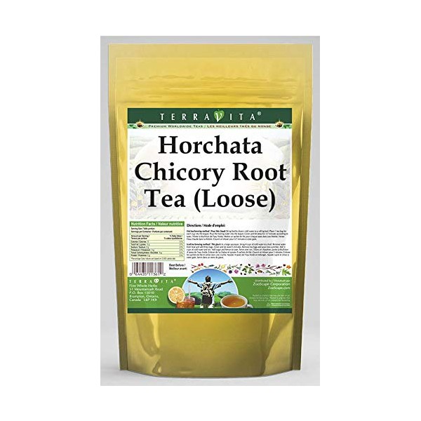 Our Horchata Chicory Root tea is a delicious flavored Chicory Root coffee alternative with Almonds, Cinnamon Chips and Hibiscus Flower that you will really enjoy! The unique and caffeine-free Horchata aroma and taste is a delight! - Ingredients: Chicory Root, Almonds, Cinnamon Chips, Hibiscus Flower and Natural Horchata Flavor. - Hot tea brewing method: Bring freshly drawn cold water to a rolling boil. Place 1 teaspoon of tea for each desired cup into the teapot. Pour the boiling water into the pot, cover and let steep for 2-4 minutes. Strain and pour into your cup; add milk and natural sweeteners to taste. - Iced tea brewing method: (to make 1 liter/quart): Place 5 teaspoons of tea into a teapot or heat resistant pitcher. Pour 1 1/4 cups of freshly boiled water over the tea itself. Steep for 5 minutes. Fill a serving pitcher with 1/4 cold water. Strain and pour the tea into the serving pitcher Add ice and top up with cold water. Sweeten and garnish to taste. - TerraVita is an exclusive line of premium-quality, natural source products that use only the finest, purest and most potent ingredients found around the world. TerraVita is hallmarked by the highest possible standards of purity, potency, stability and freshness. All of our products are prepared with the highest elements of quality control, from raw materials through the entire manufacturing process, up to and including the moment that the bottles or bags are sealed for freshness and shipped out to you. Our highest possible standards are certified by independent laboratories and backed by our personal guarantee. - TerraVita exists to meet and ensure your family's health and wellness without the harmful effects or chemicals and prescription medications. We strive to make all of our products affordable and reliab