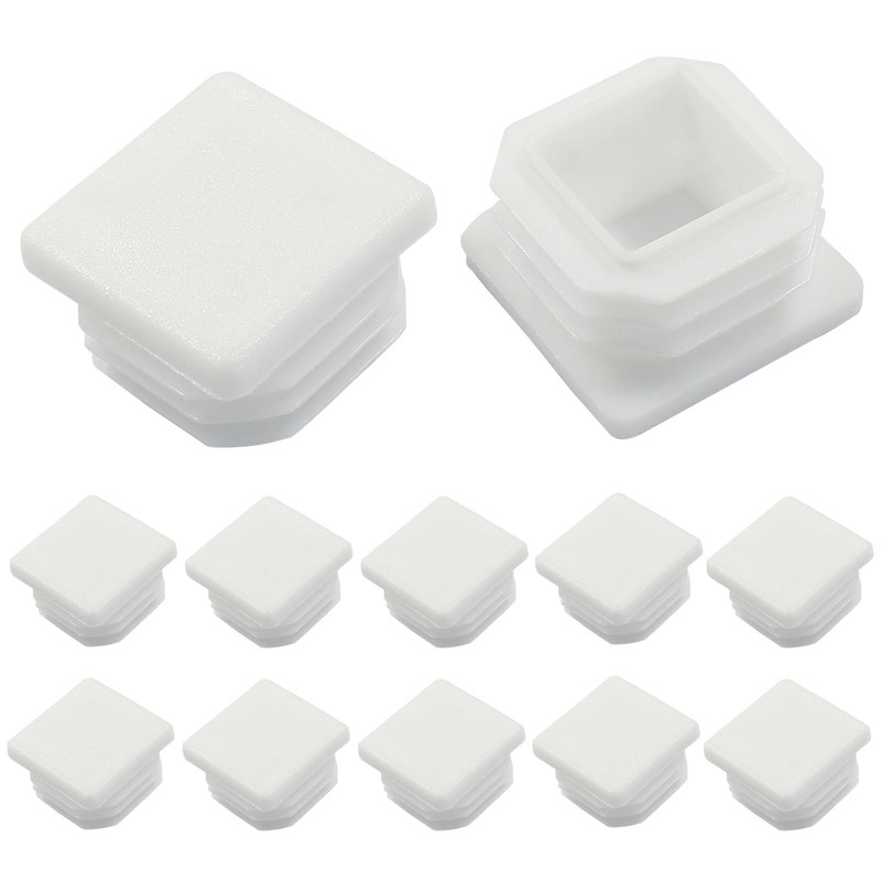 Hordion 12 Pcs 1" Square Plastic Plugs, White Tubing End Cap Chair Leg Inserts for Pipe Post Chairs Furniture