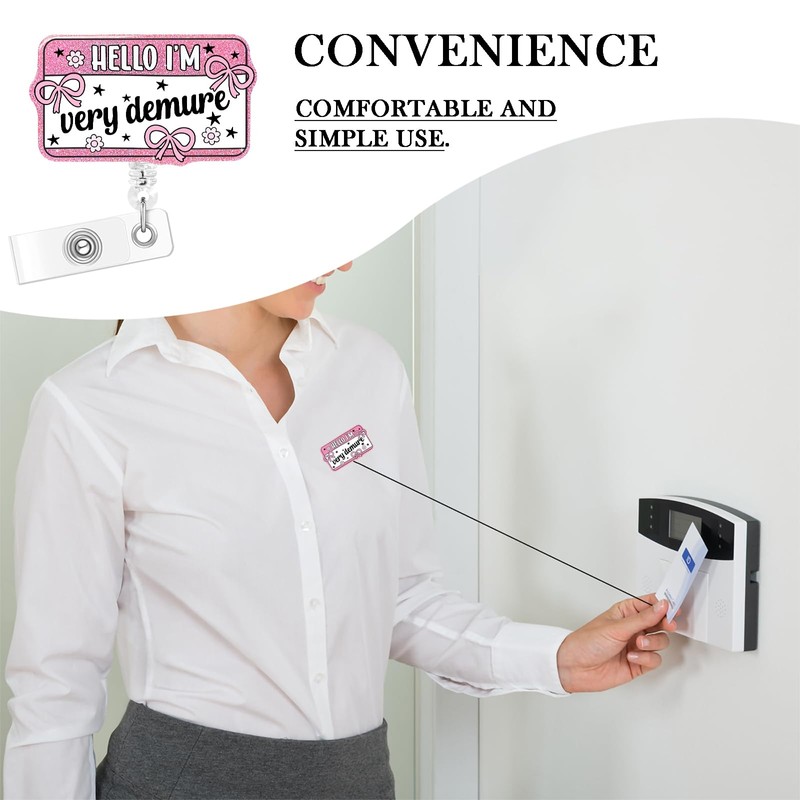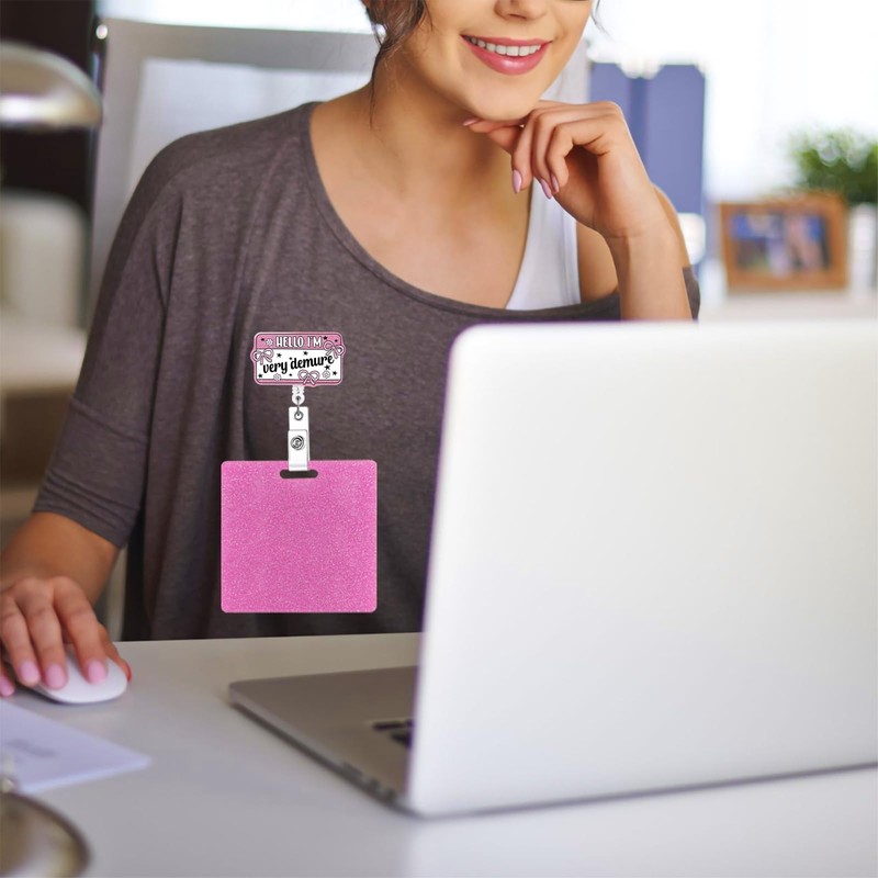 Horee Nurse Badge Reel, Retractable ID Card Holder with Alligator Clip, Bling Acrylic Badge Holder, Demure Funny Design (Demure-4)