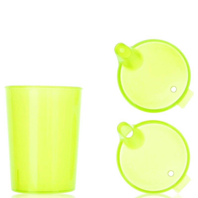 - Set of drinking cups with 2 different lids: 1x drinking opening diameter 4 mm for liquids and 1x drinking opening diameter 12 mm for liquids, soup, porridge etc.