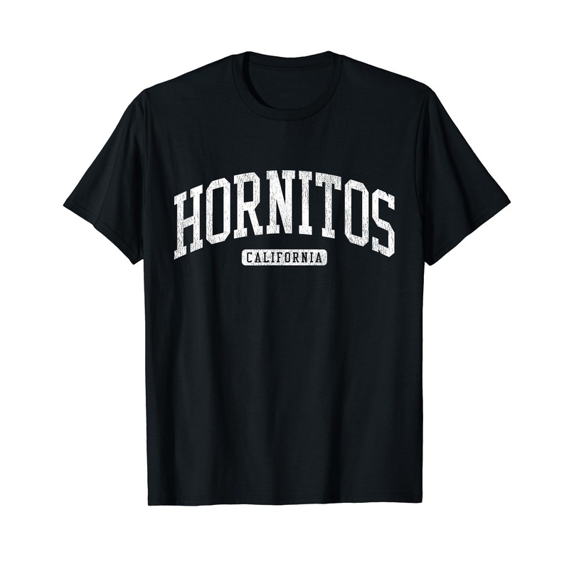 - Hornitos California shirt - a simple basic old school college athletic dept distressed sports style block letter design. Great Hornitos gift idea or vacation souvenir keepsake. town, city & state.