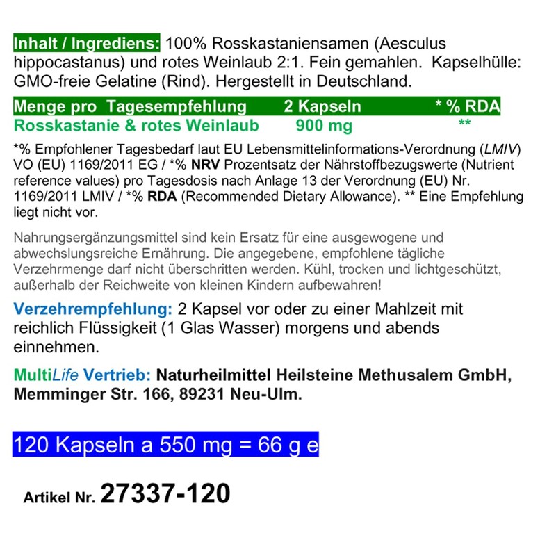 - Trust in the power of nature and experience for yourself why horse chestnut with vine leaves is recommended in natural practice as a natural vein protection for light and relaxed legs.