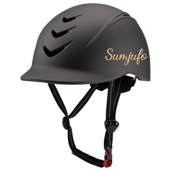 Horse Riding Schooling Equestrian Helmet,Adjustable Low Wind Resistance Lightweight Helmet with High-Strength Material,V Shape Ventilation Holes,.FIT 55-62cm Head Circumference,Dark Gray L.
