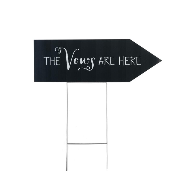 The Vows are Here die-cut Arrow shaped yard Sign is printed on both sides. Black paperboard 8 x 24-inch Sign with white printing; metal stake included. Look for coordinating reception party direction Sign. Create a perfect wedding day with Hortense B. Hewitt wide range of products, from practical to just for fun you'll find a great selection. With more than 60 years experience making weddings special, HBH has thousands of beautiful wedding day accessories, bridal shower musts, fun wedding favors, bachelorette party Novelties, and anniversary mementos. Take a look at what Hortense B. Hewitt has to offer, and you won't be disappointed. Sign created and printed in the U. S. A. ; Beware of counterfeits by ordering directly from or other trusted retailers.