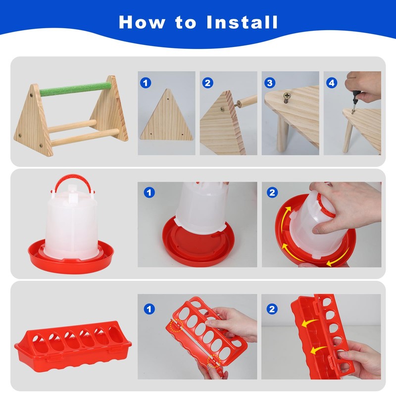 - 【Efficient Water and Feeding System for Chicks】This baby chicken supplies features a 0.75L water feeder that accommodates multiple chicks and minimizes spills, plus two detachable feeders with 12 individual holes each, allowing up to 24 chicks to eat together. This organized design ensures a tidy feeding area and simplifies cleanup for a healthy environment