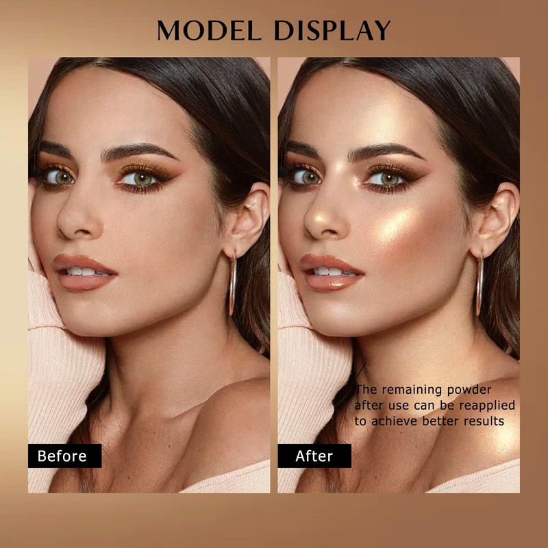 - Sparkle Finish: This highlighter powder contains a unique shimmering powder that subtle sheen with high refractive index pearlescent properties that increase skin luminosity and give you a radiant, sun-kissed glow finish when applied to areas you want to highlight. The soft, rich colors enhance your features and give you a full, sophisticated look for a glamorous finish
