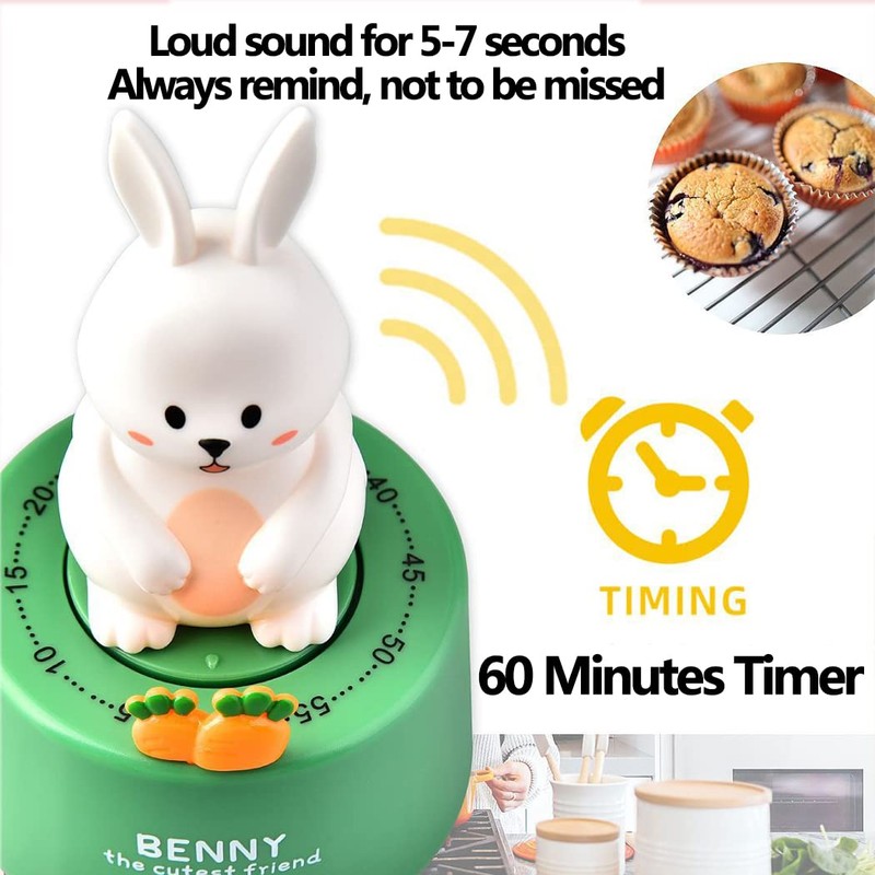 Hoshen Homework Self-Discipline Artifact Learning Special Tile Timer Kitchen Reminder Three-Dimensional Rabbit Timer, Green