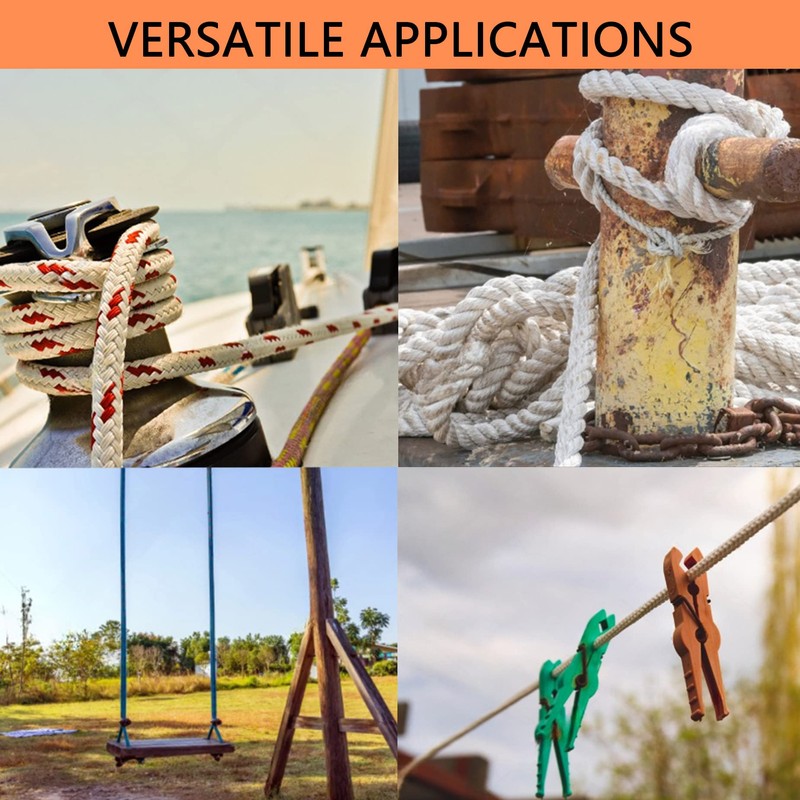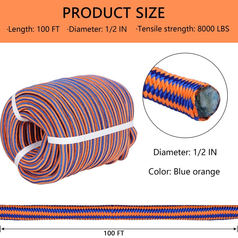 - Soft and easy to knot - The 1/2 inch braided rope is soft and has no burrs on its surface. The soft polyester rope knots easily when operated.
