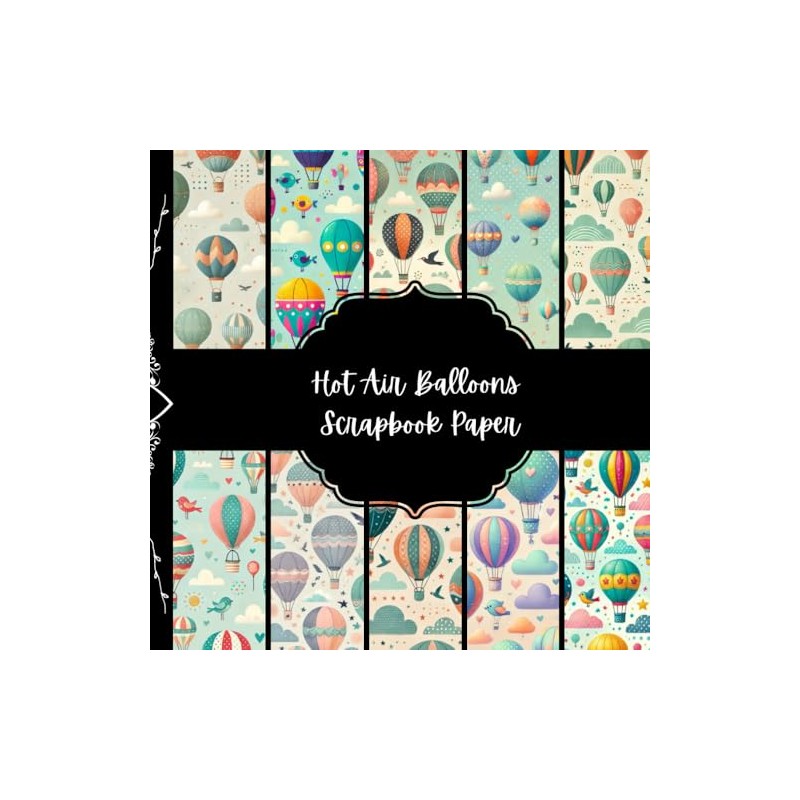 Hot Air Balloons Scrapbook Paper, Sport Junk Journal Paper, Fun Activity Decorative Paper, DIY Projects, Origami, Collage Sheets, Decoupage Paper, 8,5" by 8,5" inches, 10 Designs, Double Sided