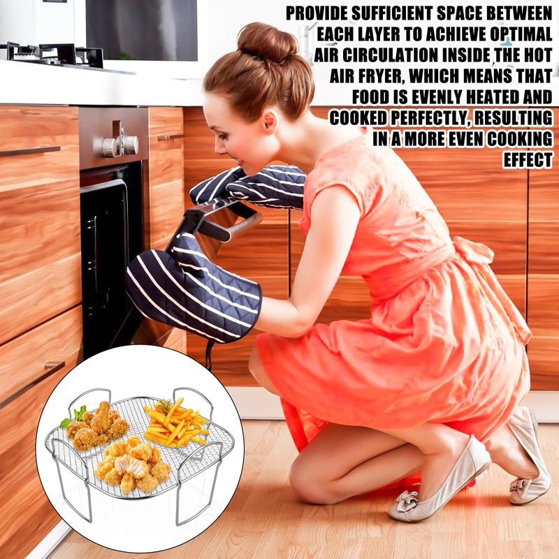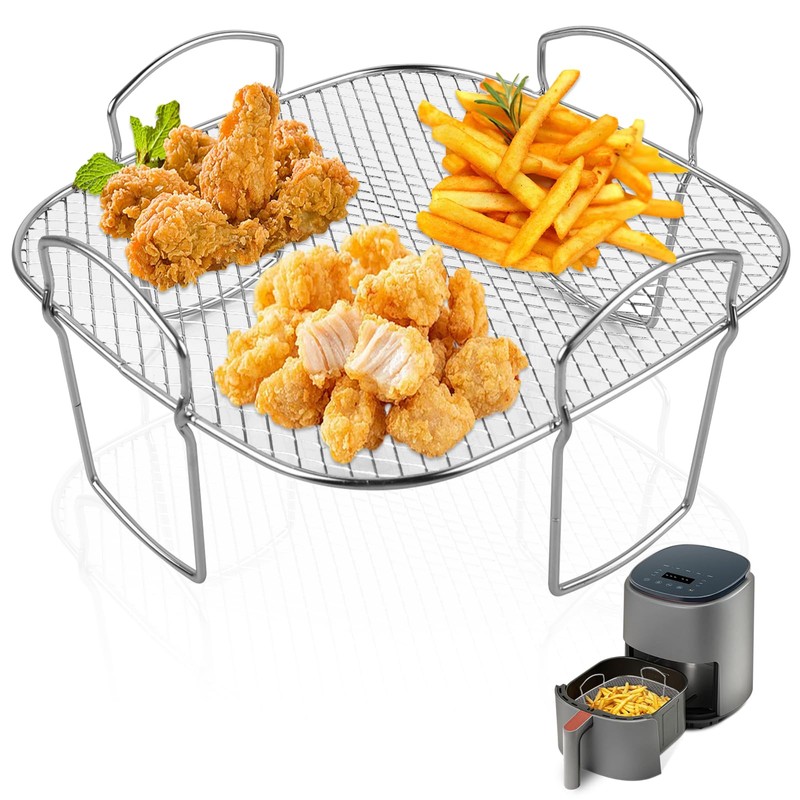 - Premium 304 stainless steel: our hot air fryer cooking grate are made of high-quality food-grade 304 stainless steel, non-toxic and odourless, safe and durable, will not rust or corrode, high temperature resistant, easy to clean and can be used for a long time