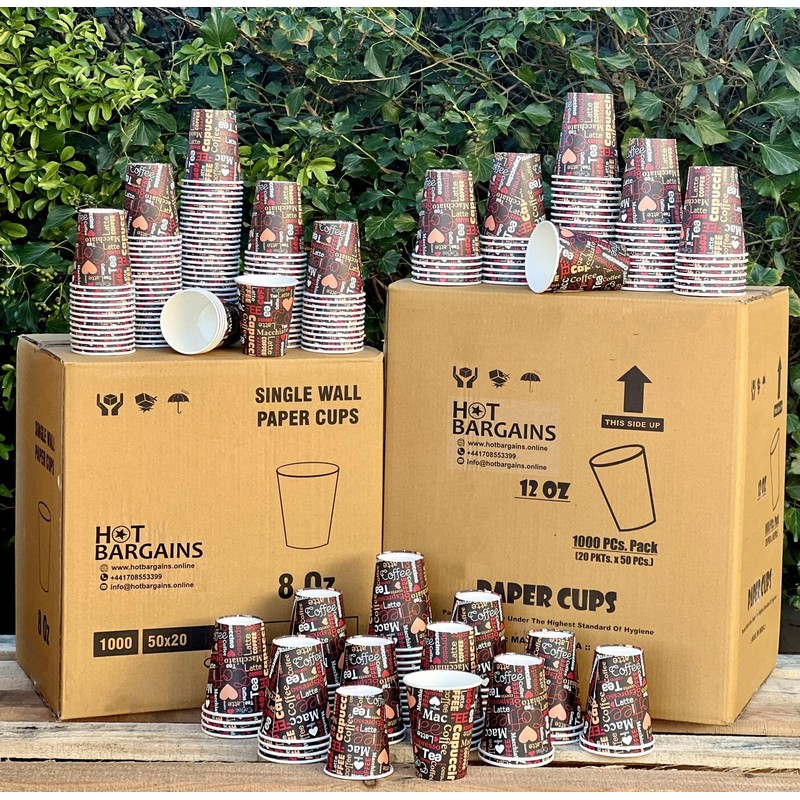 HOT BARGAINS 100 x 12oz 360ml Disposable Single Wall Printed Paper Cups for Hot Drinks (Pack of 100)