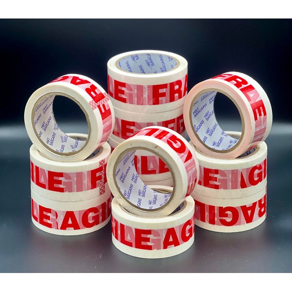 HOT BARGAINS Fragile Tape Roll Size 48mm x 66 Metre for Industrial Packaging (6)