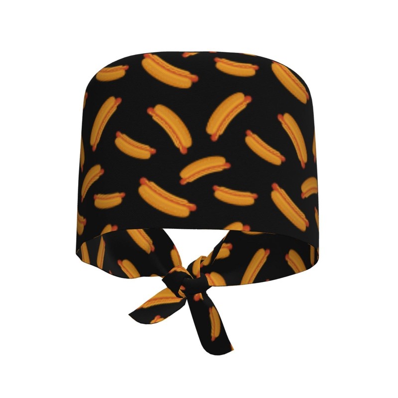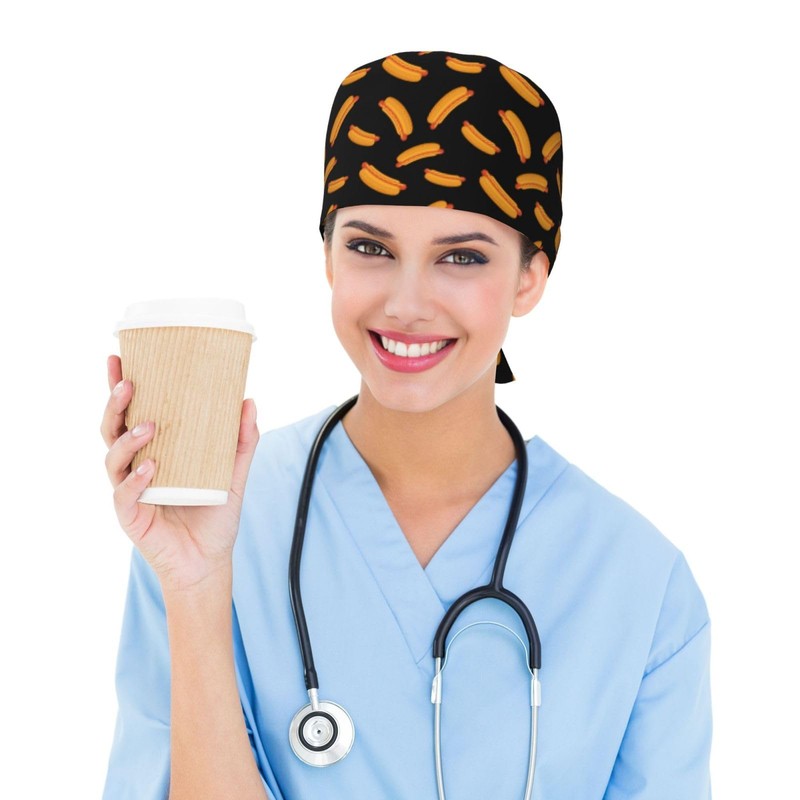 Hot Dog Working Cap Scrub Cap with Sweatband Adjustable Unisex Tie Back Hat Nursing Doctor Surgeon Cap for Women Men
