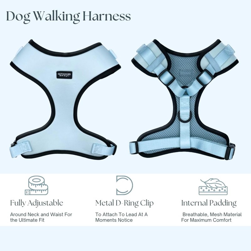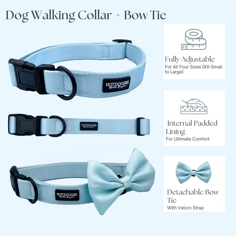 Hot Doggies Dog Walking Bundle Set. 6 COLOURS AVAILABLE. INCLUDES Harness, Lead, Collar, Treat Bag, Poo Bag Holder, Bow Tie (X-Small, Ice Blue)