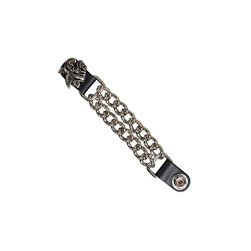 An American made double chain vest extender with a Rose medallion. Great for any vest, this extender is made of silver chain links and leather with a silver snap, designed to attach to your vest snaps and make for a better fit. Ride in biker style with the Hot Leathers Motorcycle Vest Extender.