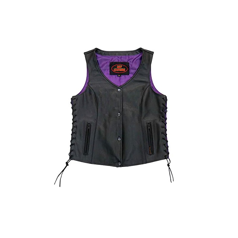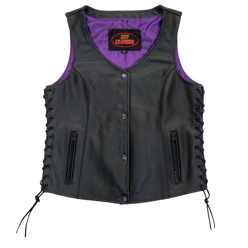 Hot Leathers Women's Standard Leather Motorcycle Vests, Vsl2001-black