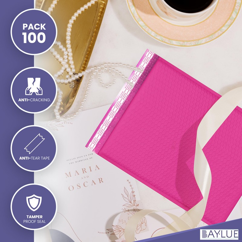 Hot Pink 10x13 Inch Poly Bubble Mailers |Self Seal Padded Envelopes for Thick books | Air Cushioned Bubble Mailer | Usable Size 9.5x13 | Waterproof Lightweight Mailing Shipping Bags | 100 Pack Bulk