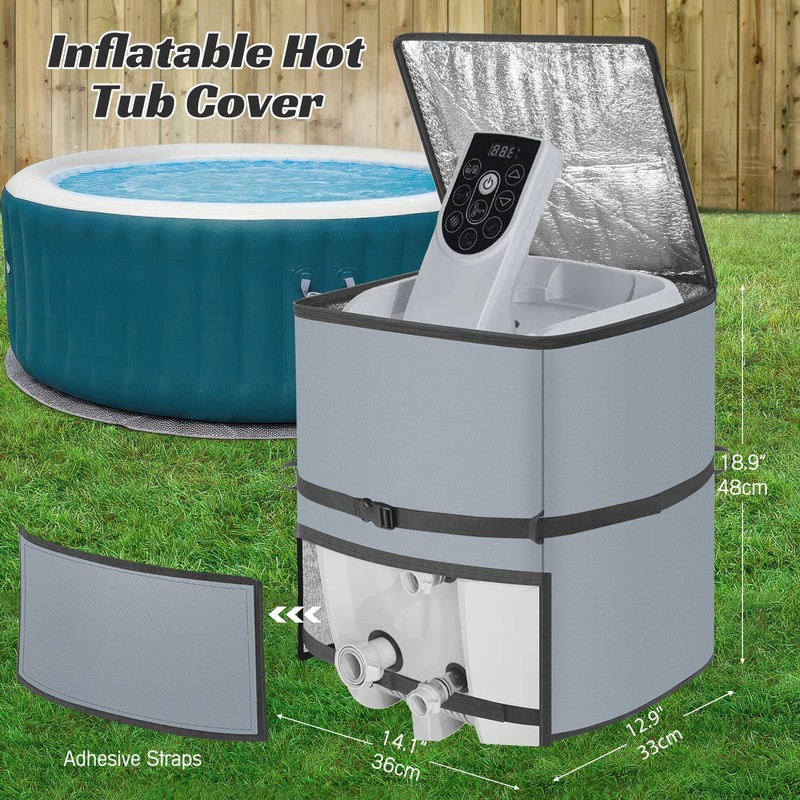 - 【Durable & Weatherproof】Protect your hot tub pump and heater with this inflatable hot tub cover, made from heavy-duty 600D Oxford fabric + aluminum foil lining. Resists rain, snow, UV rays, and extreme temps—ideal for WEJOY,LILYPELLE, Saluspa, Intex, and Coleman inflatable hot tubs