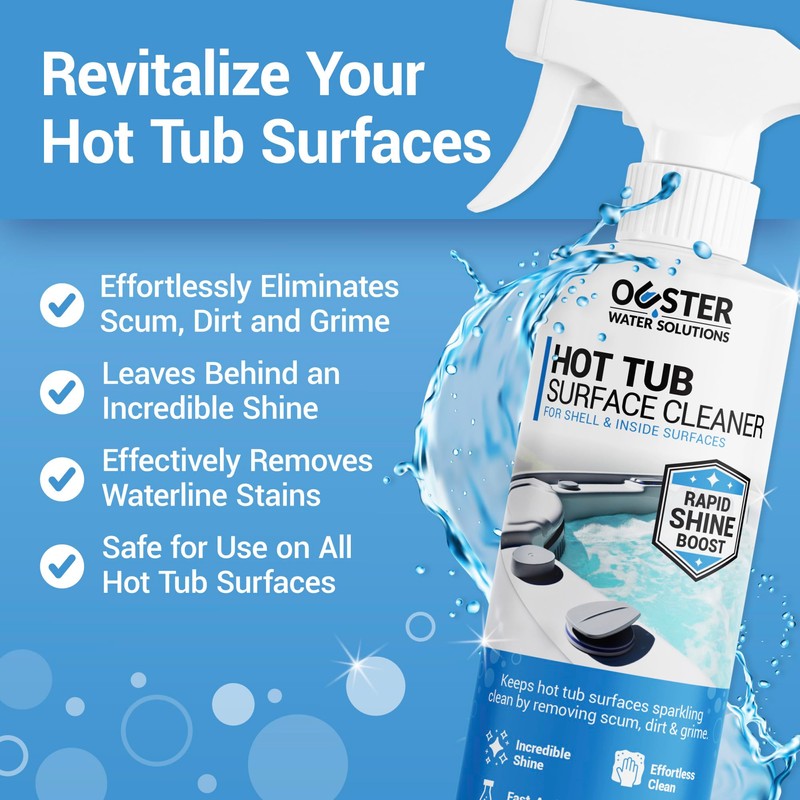 Bio Ouster Hot Tub Surface Cleaner - Hot Tub Cleaner for Inside Surface & Shell - for Standard and Inflatable Spas - Removes Dirt and Grime for a Sparkling Shine - Made in USA (16oz)