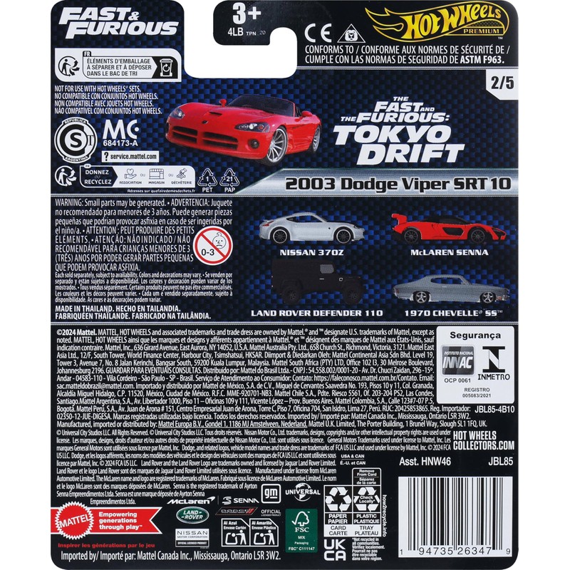 - Fast fans will want to collect them all. Each sold separately, subject to availability.