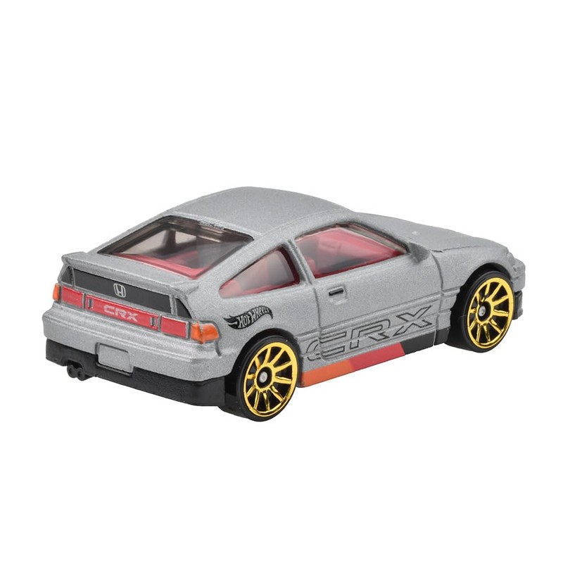 - Contents: CR-X debuted as a derivative vehicle of the 3rd generation Civic in 1983. It is known in Japan as the pioneer of the FF light weight sports cars that drive on the front wheel. After received popularity, the second generation was released in 1987. Honda at the time has been stylized as the identity of wide and low roads, and the CR-X is 2.0 inches (50 mm) wide and a 0.8 inch (20 mm) total height has been reduced. In particular, the low hood realized by changing the front suspension from the traditional strut type to the double wishbone type is impressive, and it is said that when you sit in the driver's seat. The unique point of the second generation CR-X is that there is an extra window on the back of the body (rear rear end section), but in Hot Wheels we have applied a black pad print on the upper part of the tail light