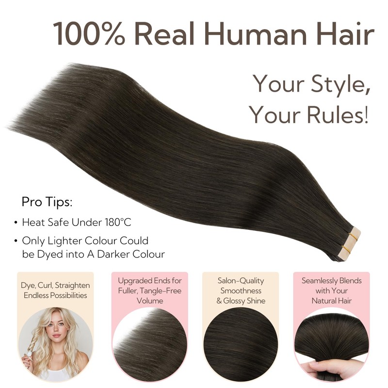 - 【Festes und unsichtbares Klebeband】Jede Strähne der Echthaarverlängerung wird mit transparentem Klebeband fest fixiert. Es besteht kein Grund zur Sorge, dass das Klebeband die Haut reizt, da das Material hypoallergen ist und daher weder Kopfhaut noch Haar schädigt. Außerdem lässt sich das Klebeband mit Remove-Öl leicht und rückstandsfrei entfernen