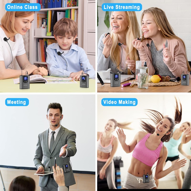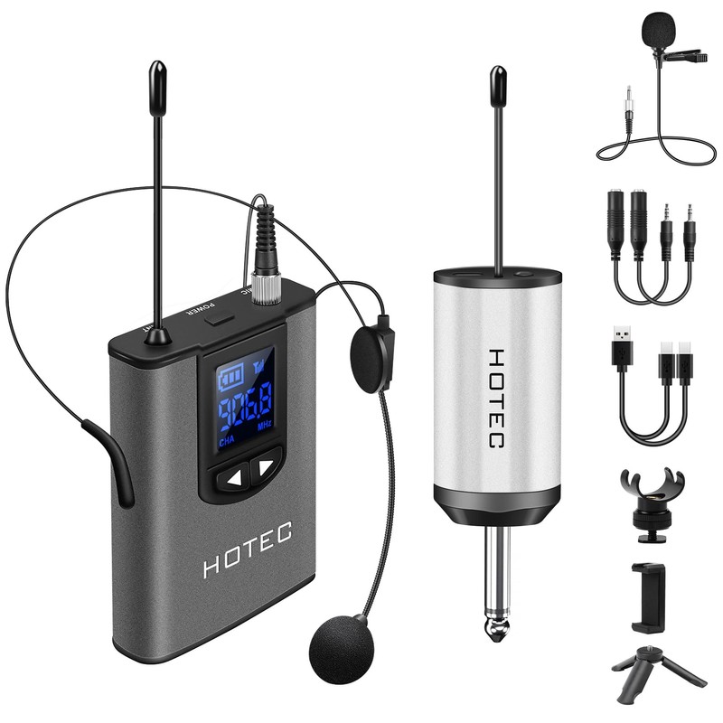 - CLEAR SOUND QUALITY: Hotec wireless lavalier microphone systems offers high quality sound transmission and clear voice at operating range up to 240ft line of sight without feedback or distortion.