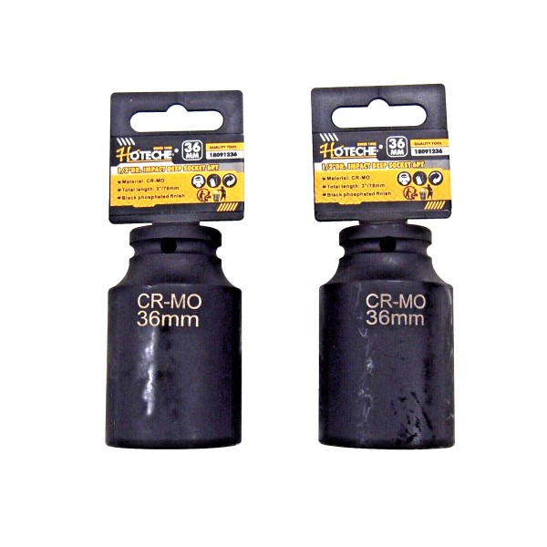 HOTECHE 2 Pcs 1/2" Dr. Air Impact Socket Deep 6 Points CR-MO Metric 36mm 18091236