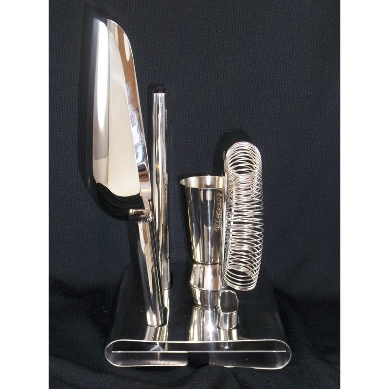 Better close your tab--these handy bar tools from Hotel Collection mean you can expertly prepare your favorite cocktails at home! Mirror-polished stainless steel gives all the essentials, from scoop to strainer, a look of timeless glamor. Stainless steel Hand wash Includes strainer, scoop, opener, jigger and stand only@macy's A great addition to your collection of barware and bar glasses