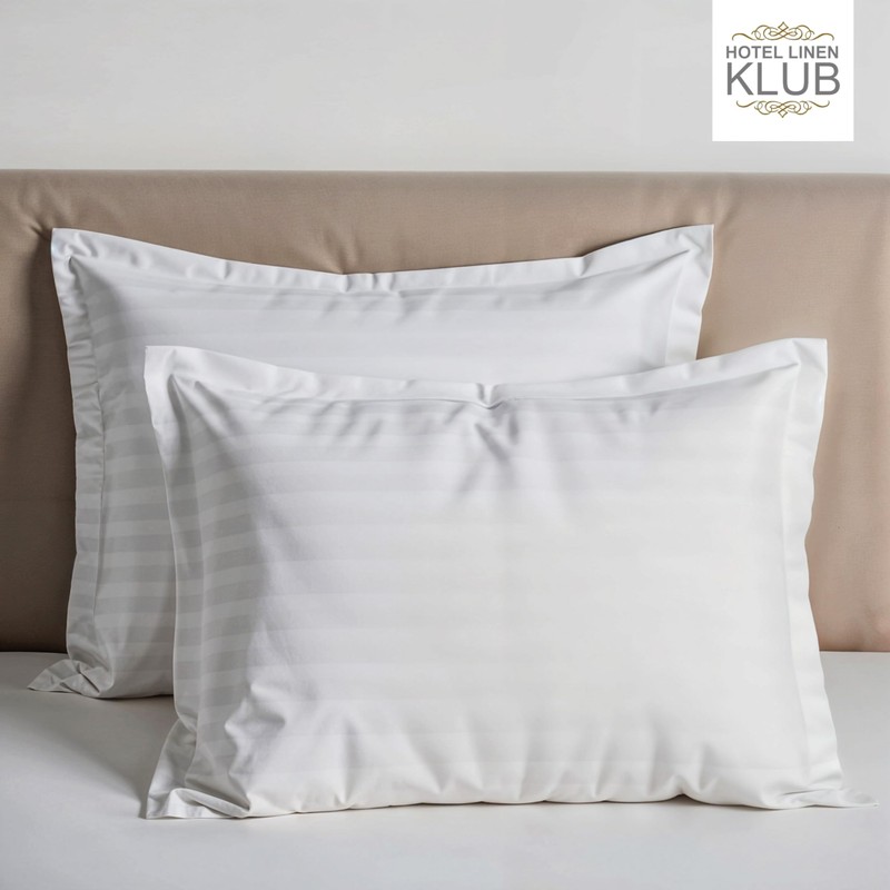 Hotel Linen Klub 100% Cotton Pillow Shams - 300 Thread Count, Super Soft and Breathable. Set of 2 with 1cm Stripe Pattern, Standard Size 20x30 Inches (White, Standard)