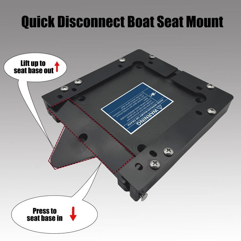 • Enhance your boating experience with our universal seat mount, featuring a quick disconnect design and a 6¼ inch seat swivel. Perfect for easy installation on any flat 8 inch x 9 inch surface. This seat mount and swivel combination provides added comfort and flexibility for a more enjoyable boating experience.