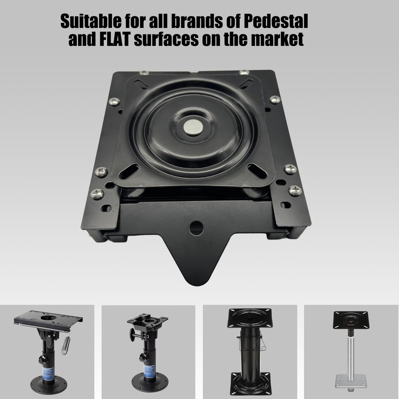 • Enjoy the convenience of easy installation and removal of seats with a swivel, compatible with all brands of pedestals. Use a screwdriver to adjust tightness as needed.This seat mount features a quick disconnect mechanism, allowing you to easily attach and detach your boat seat. The boat seat swivel included in this set enables 360-degree rotation, giving you freedom of movement and adjustable positioning while out on the water.