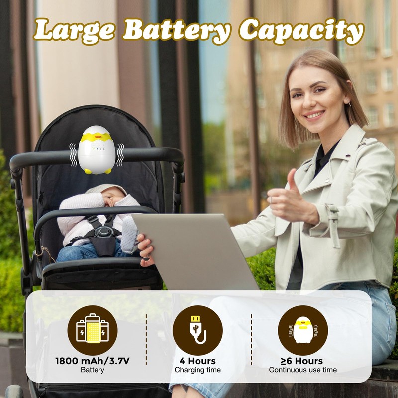 - 【Rechargeable Large Battery】This baby rocker equipped with an 1800mAh rechargeable battery can lasts up to 6 hours on a single charge, with a Type-C charge port can be charged. work for longer time with large capacity battery,convenient for going out. Ideal for bedtime, naptime, or calming a fussy baby, this vibrating soother creates a peaceful sleep environment,making it a faster sleep aid for babies.