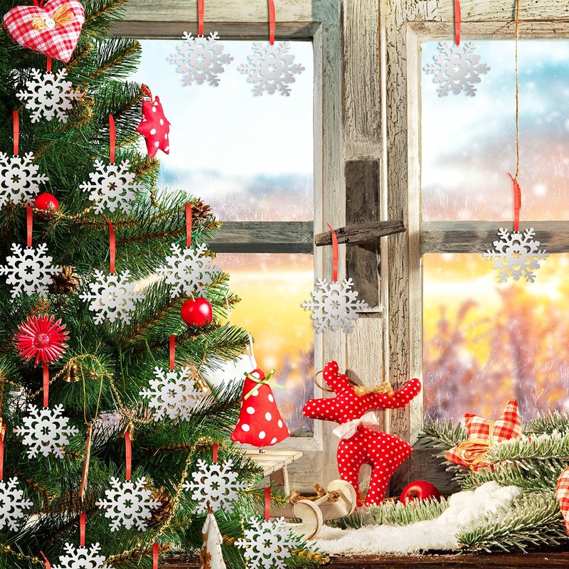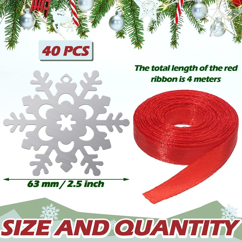 • What You Receive: the package contains 40 pieces of snowflake ornaments and 1 roll of red ribbon, the snowflake sizes about 2.5 inches/ 6.3 cm, red ribbon about 13 feet in length, the adequate quantity can satisfy your creative decoration demands, you can use them to decorate your home and other places