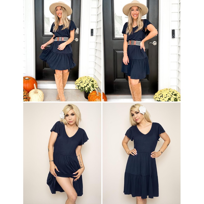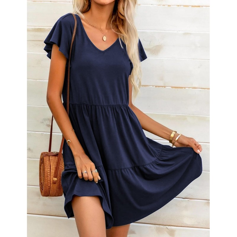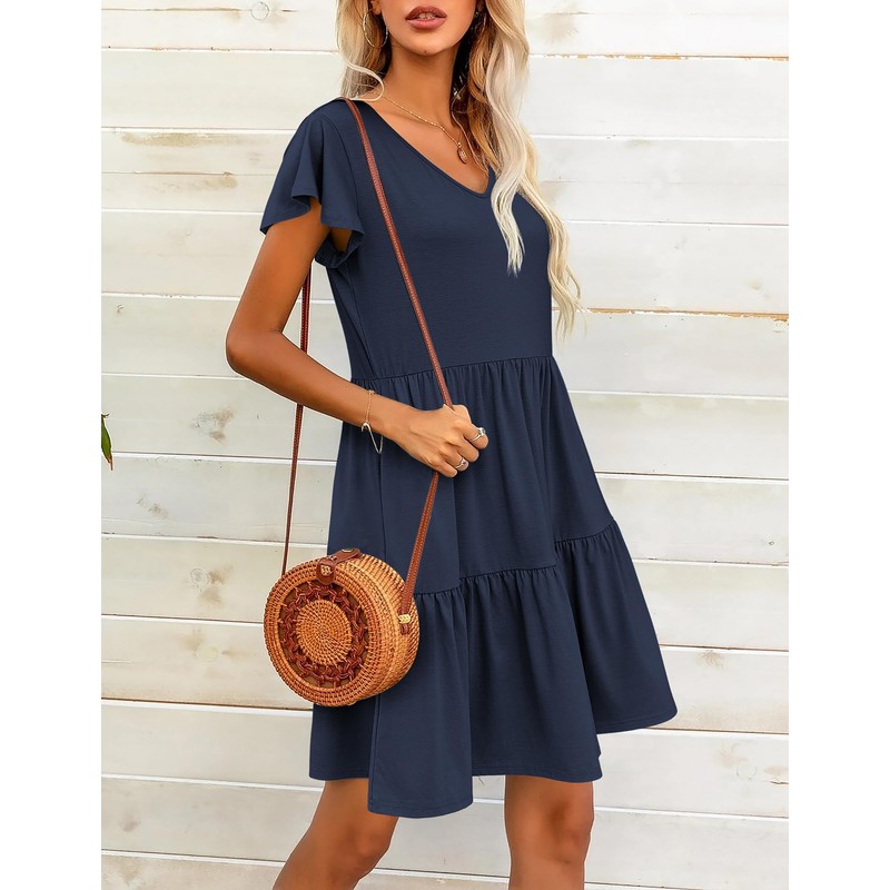- 【Feature】: Women's tiered ruffle dress/ Ruffled Dress /flutter sleeve mini dress/ Cap Sleeves/ Ruffle Armhole Hem/ V Neck/ Womens Summer Dress/ Knee Length Dress/ Loose Fit Dress/ Ruched T-Shirts/ Pleated Summer Dress/ Solid Dress